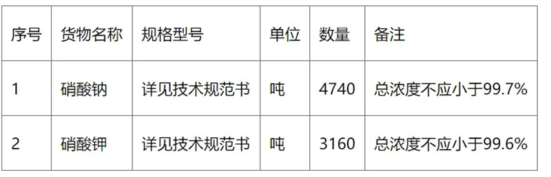 4. 交货时间:液态太阳能熔盐(硝酸钠、硝酸钾)交货时间暂定为2025年12月1日,具体供货时间以采购方通知为准,分批供货。实际供货时间可能与交货时间存在差异,成交人不得因此向采购人提出任何补偿要求。