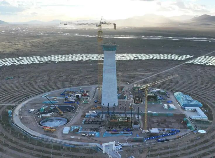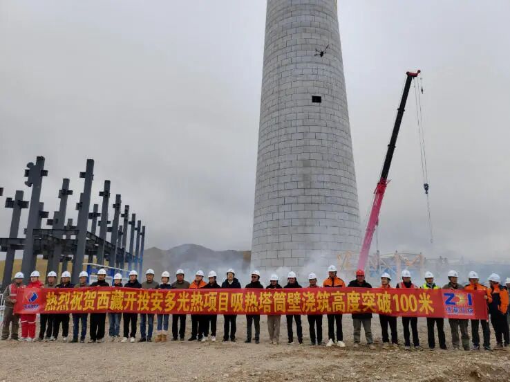 9月21日12时,位于西藏那曲市安多县的全球海拔最高塔式光热电站——西藏开投安多县土硕100MW光热项目核心建筑吸热塔主体结构浇筑成功达到100米标高。