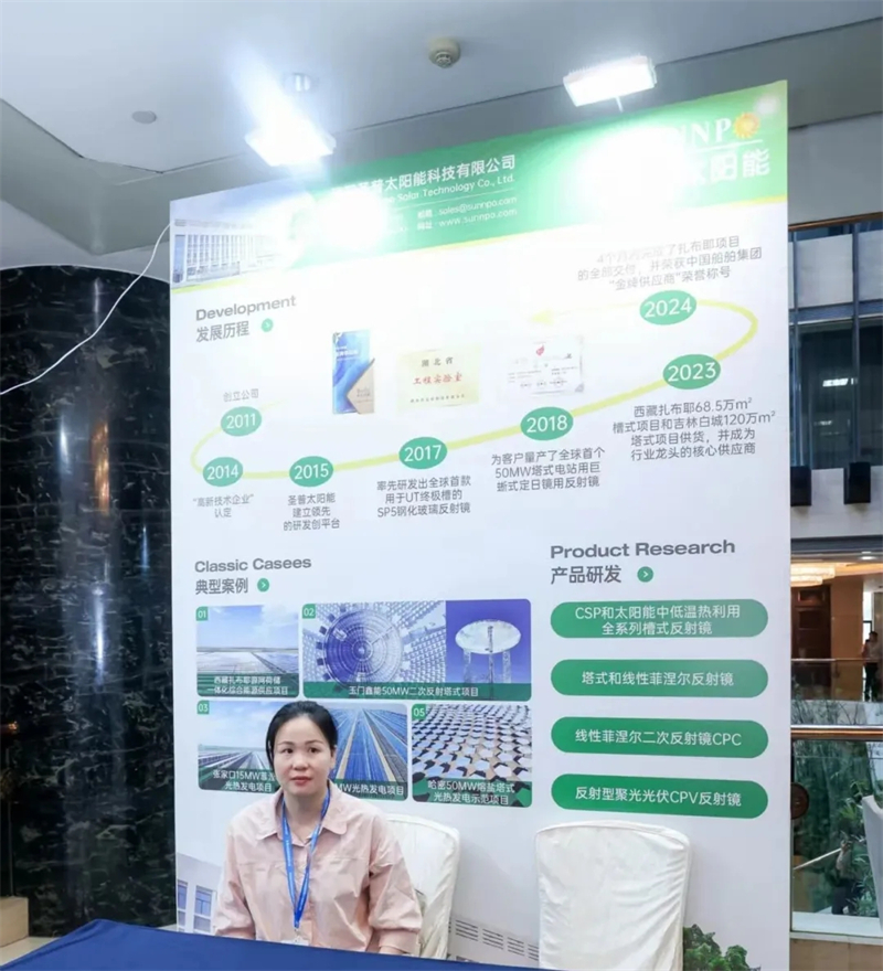 近日,在由太阳能光热产业技术创新战略联盟、中国工程热物理学会、中国可再生能源学会、中国电机工程学会主办,中国电建集团西北勘测设计研究院有限公司、浙江可胜技术股份有限公司联合主办的2025中国太阳能热发电大会上,武汉圣普太阳能科技有限公司携其全系列槽式、塔式、菲涅尔式反射镜,二次反射镜(CPC)和聚光光伏反射镜等产品在大会期间进行了现场展示。