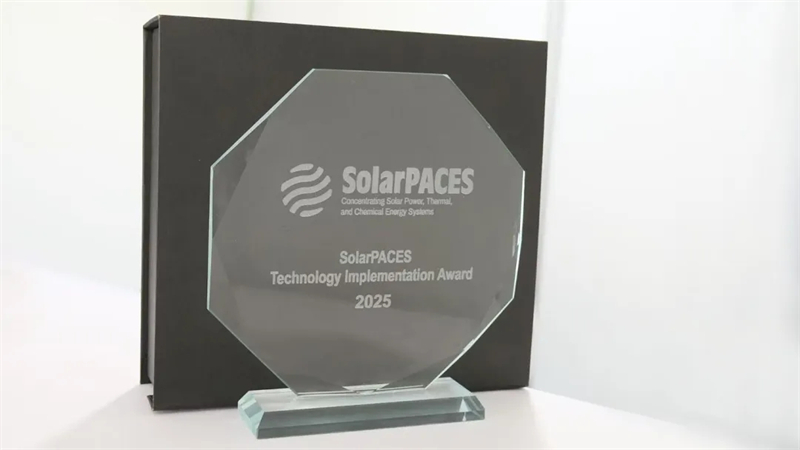 浙江可胜技术股份有限公司完全自主开发、设计、建设的青海中控德令哈50MW塔式熔盐储能光热发电项目,凭借其先进的技术、长期稳定及出色的运行表现,荣获本年度首次设立的“SolarPACES 2025 技术应用奖”。