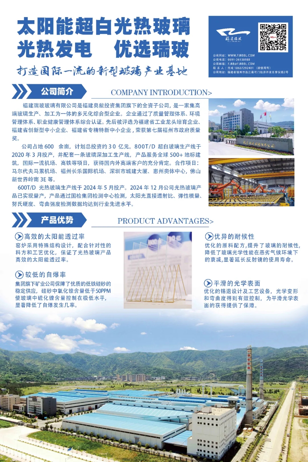福建瑞玻是福建奥能投资集团旗下的全资子公司,是一家集高端玻璃生产、加工为一体的多元化综合型企业。其600T/D 光热玻璃生产线于2024年5月投产,2024年12月光热玻璃产品已实现量产。产品通过国检集团检测中心检测,太阳光直接透射比、弹性模量努氏硬度、弯曲强度检测数据均达到行业先进水平。