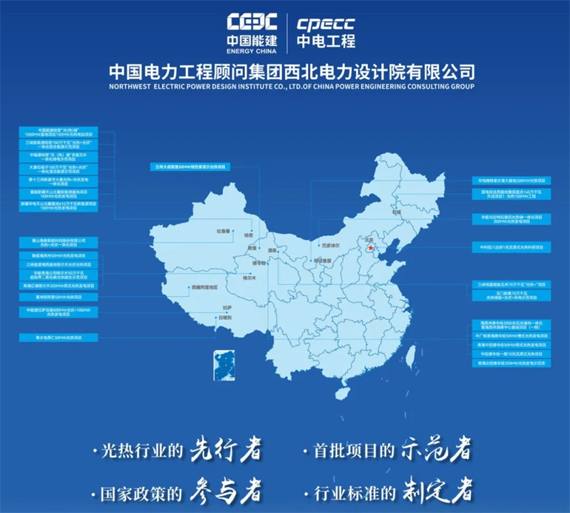 69载征程中,西北院以一座座标杆工程,勾勒出我国光热发电产业的发展轨迹。在国内,参与的首批11个光热示范项目中占据8席,市场参与率达73%;当前全国在建光热项目中,以EPC总承包或勘察设计身份参与15个,市场占有率超50%,其中线性菲涅尔式EPC项目占比100%;率先提出 “光热+风光电” 一体化发展方案,2021年推动甘肃省首批4个总装机285万千瓦“光热+”项目获批示范。