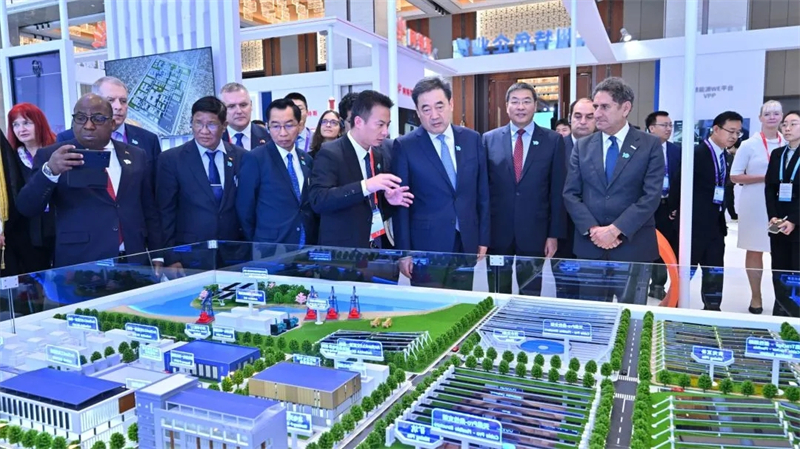 会议期间,国家能源局局长王宏志等领导莅临中信博展台参观指导,中信博高级副总裁周石俊系统介绍了中信博围绕“跟踪+”“绿电+”的智慧能源一站式解决方案,包括复杂场景跟踪、柔性支架系统、储能及光储充一体化解决方案等,同时对企业在“十四五”期间深度参与“一带一路”绿色能源合作的实践成果及项目进展进行了详细介绍。