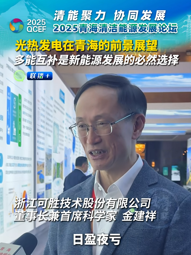 据青海新闻联播,10月30日,2025青海清洁能源发展论坛在青海省西宁市召开。论坛召开期间,记者就光热发电在青海未来的展望,采访了太阳能光热联盟理事单位、中国可再生能源学会太阳能热发电专业委员会副主任委员、浙江可胜技术股份有限公司董事长兼首席科学家金建祥。