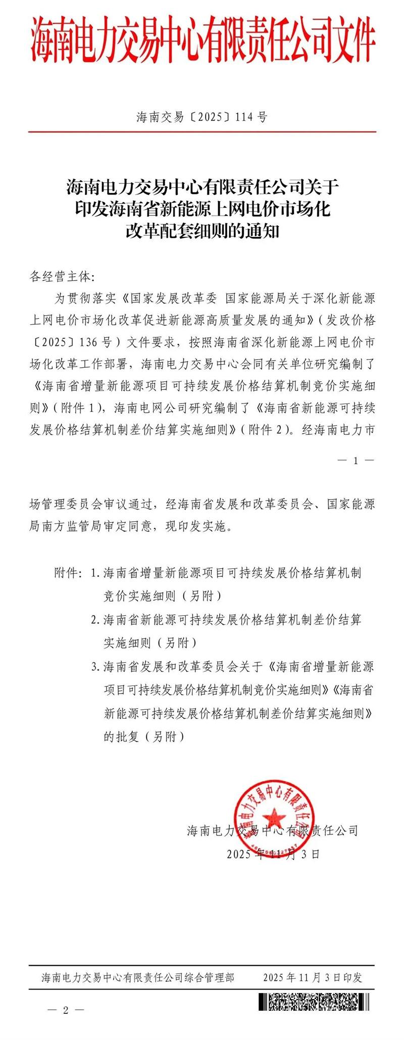 11月3日,海南电力交易中心印发海南省新能源上网电价市场化改革配套细则的通知。