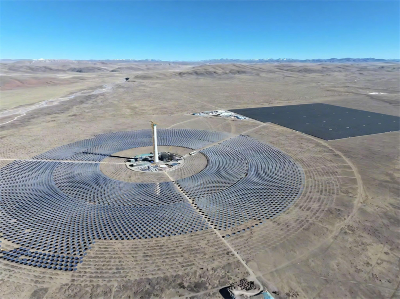 这里是国家首批“风、光、热、储”一体化示范项目,也是东北地区首座、世界纬度最高的塔式熔盐光热电站。项目现场,光热发电区内,技术人员正全神贯注进行最后的电气接线与系统调试;镜场区域,工作人员穿梭其间,加紧安装定日镜控制箱,敷设镜间电缆。截至目前,项目土建工程已完成95%,设备安装进度达80%,预计年底前投入运行。
