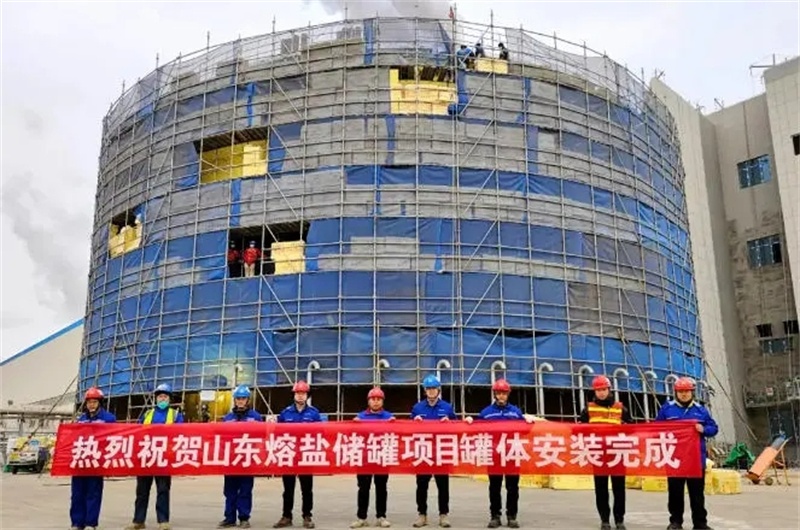 12月12日,由太阳能光热联盟理事单位——东方电气集团东方锅炉股份有限公司(简称:东方锅炉)承建的华能西安热工院500MW/2000MWh熔盐储罐项目迎来重要阶段性成果——高、低温熔盐储罐罐体安装全面完成。该里程碑节点的顺利实现,标志着项目主体设备安装取得重大进展,为后续系统联调与整体投运奠定了坚实基础。