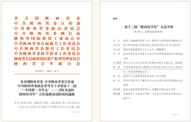 此次获评“陕西好青年”,既是对陈康同志在科技创新、产业发展和青年担当等方面突出表现的充分肯定,也展现了中国电建西北院青年奋发有为、实干争先的精神风貌。他的事迹为广大中国电建西北院青年树立了榜样,激励大家进一步坚定理想信念,立足岗位、踔厉奋发,在服务国家战略、推动行业创新、助力绿色发展中展现青春担当、贡献青春力量。