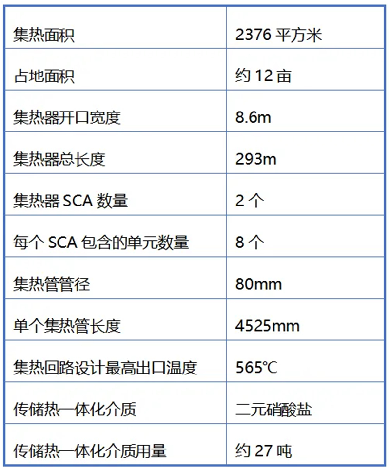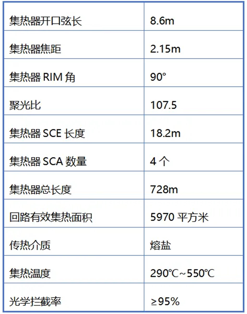 表:龙腾光热熔盐大槽聚光集热系统验证平台技术参数