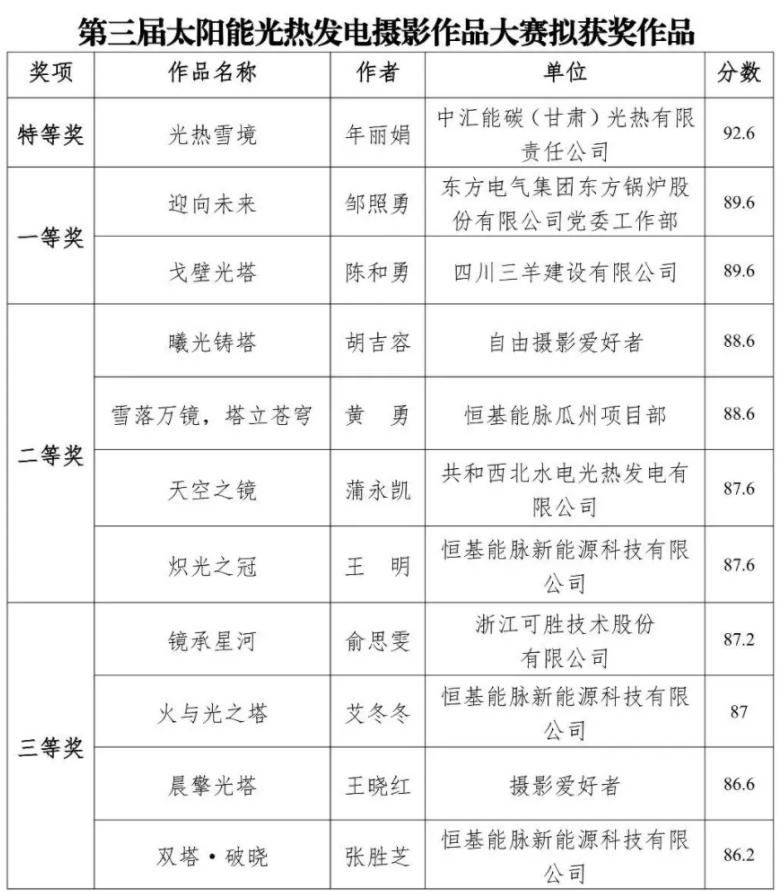 附:第三届太阳能光热发电摄影作品大赛拟获奖摄影作品
