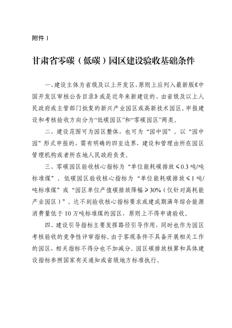 1.甘肃省零碳(低碳)园区建设验收基础条件