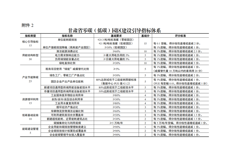 2.甘肃省零碳(低碳)园区建设引导指标体系