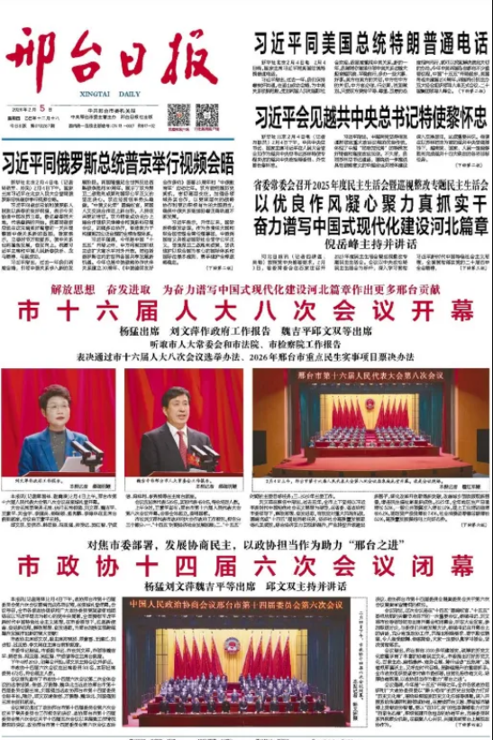 2月4日,邢台市第十六届人民代表大会第八次会议召开,邢台市人大代表、北京道荣能源集团、河北道荣新能源科技有限公司董事长薛道荣出席会议,依法履职、积极建言献策。
