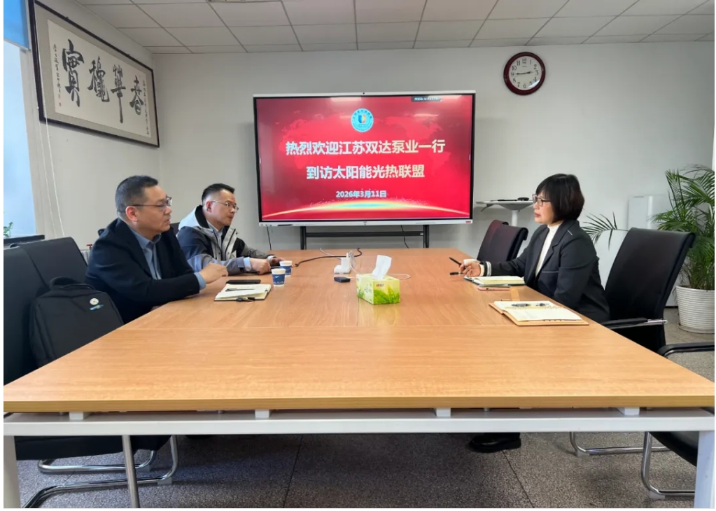 2026年3月11日下午,江苏双达泵业股份有限公司(以下简称“双达泵业”)销售部部长、总经理助理朱乔宏和驻京办负责人耿中秋一行到访太阳能光热产业技术创新战略联盟(以下简称:联盟)秘书处,与联盟秘书长杜凤丽进行座谈交流。