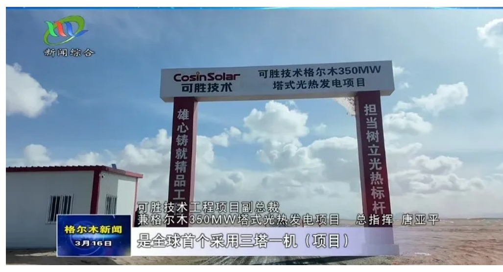 据可胜技术工程项目副总裁兼格尔木350MW塔式光热项目总指挥唐亚平介绍,格尔木350MW塔式光热电站是全球首个采用三塔一机的光热发电项目,总投资额约54亿元,年设计总发电量9.6亿千瓦时。项目于去年10月份开工建设,去年已经完成三个集热塔出零米工作。