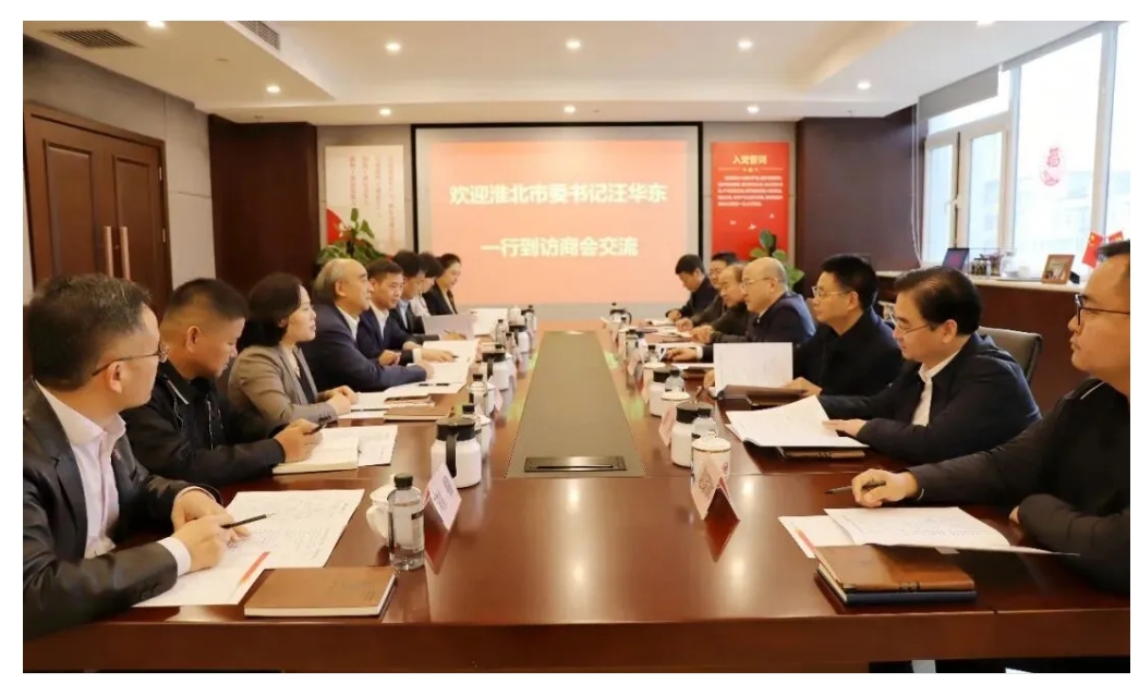 近日,淮北市委书记汪华东率市委常委、常务副市长黄韡、市政协副主席李公峰及市发改委主任盛磊、驻京联络处主任戚德新等部门负责人,到访北京安徽企业商会,与商会会长梁金辉,常务副会长、北京道荣能源集团董事长薛道荣等企业家座谈交流。