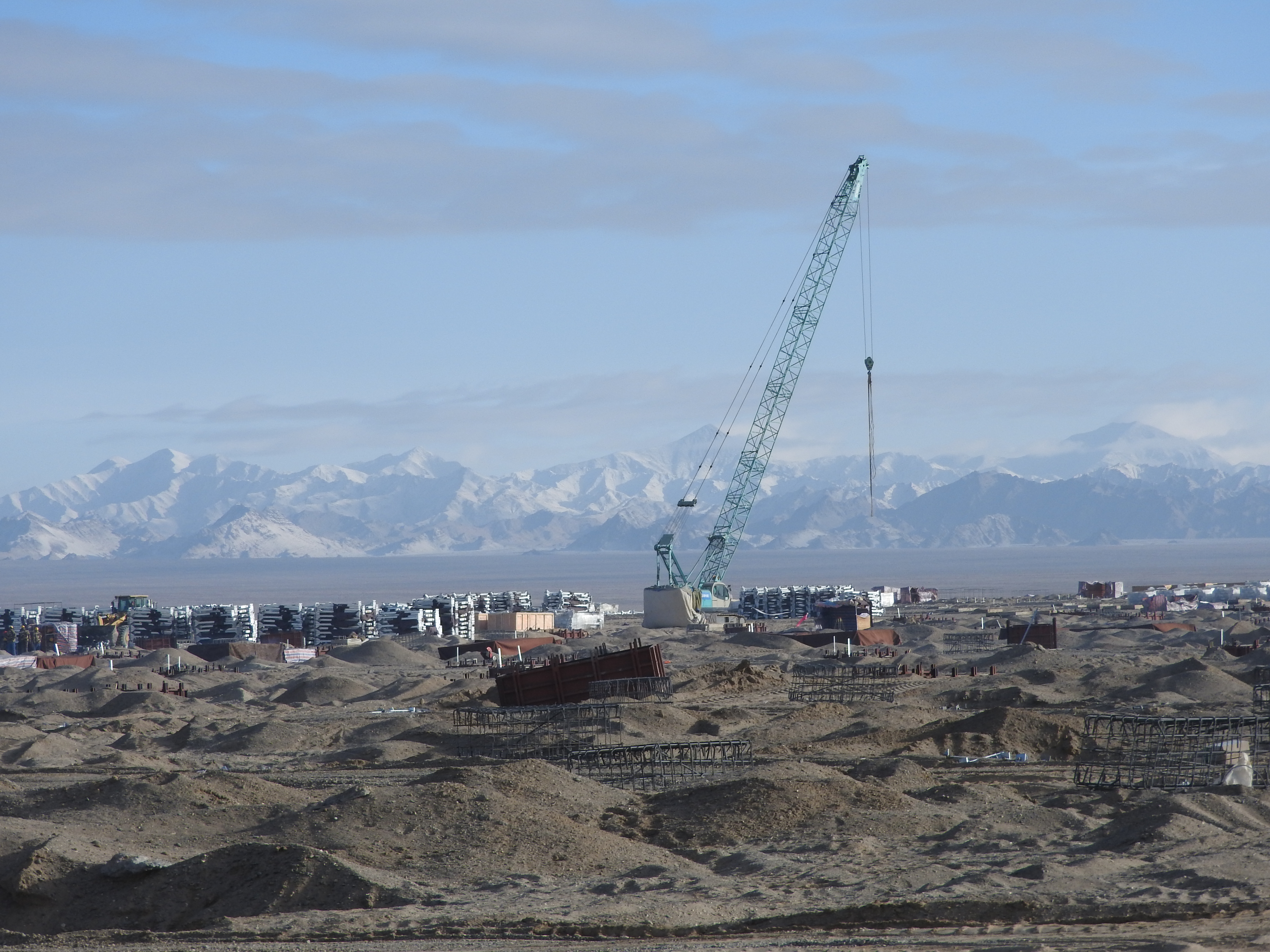 组图:金钒阿克塞50MW槽式熔盐光热发电示范项目建设现场