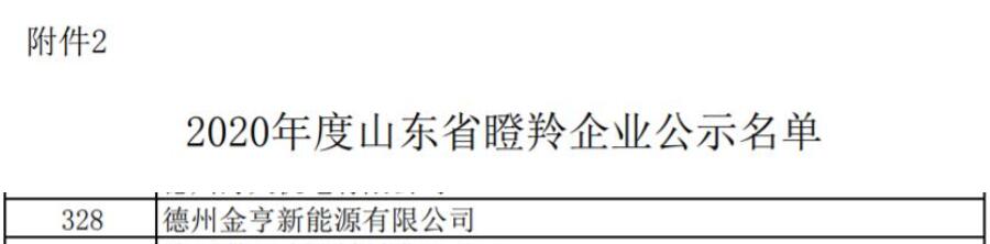 12月3日,山东省工信厅分别对2020年度山东省瞪羚、独角兽企业名单予以公示。其中,太阳能光热联盟成员单位——德州金亨新能源有限公司(简称金亨新能源)被评定为独角兽企业。