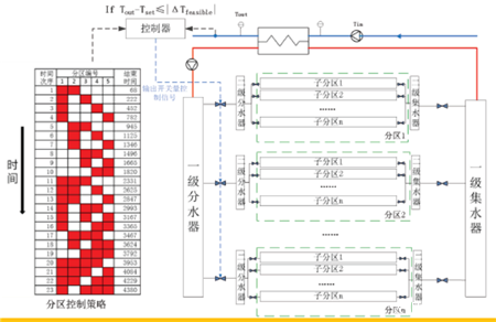 提出了地埋管分区控制的控制策略——通过将地埋管储热体划分为若干区域,以储热系统出水温度为控制对象,通过改变任一时刻储热体调用储热体的分区及分区组合,实现将储热体出水温度控制在一定范围内的目标,从而实现地埋管储热体与热源之间长周期动态特性的匹配。