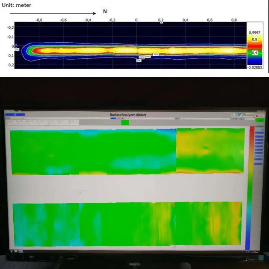 Fraunhofer ISE团队以兰州大成为该电站率先建成的上述标准熔盐线性菲涅耳聚光集热系统为检测评估对象,分别从反射镜器件光学性能、聚光器静态光学性能、聚光集热系统动态光学/热学性能、高温熔盐标准集热回路功能性/安全性设计四个方面进行详细的评估检测,德国专家先后两次到大成兰州新区工厂、四次到敦煌项目现场开展实际测试工作,系统地收集了包括夏至、秋分到冬至等多个典型设计点的实测数据,评估检测和分析处理工作持续长16个月。