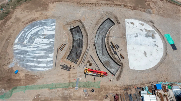 冷热熔盐储罐是整个项目最重要的储能单元,目前基础垫层已经浇筑,熔盐泵平台即将搭设完成。
