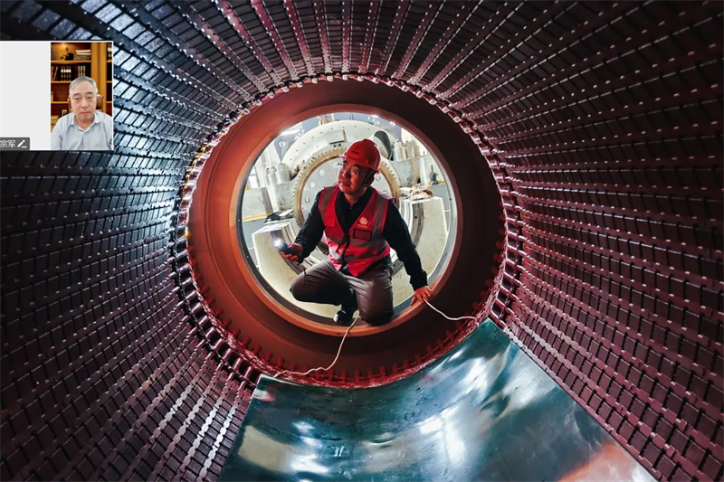 工程建设团队针对汽轮发电机转子穿装技术难度大、风险系数高、作业流程复杂等问题,制定详细吊装方案,组织设备厂家、监理、施工单位对发电机定子、转子进行全方位的检查清理工作,认真组织现场安全作业交底,为穿装转子作业做好前期准备工作。穿装过程中,各级作业人员分工明确、密切配合、专人监护,转子与定子间隙始终控制在设计范围内,经过3.5小时精准作业,最终完成穿装作业,各项指标均达设计标准。