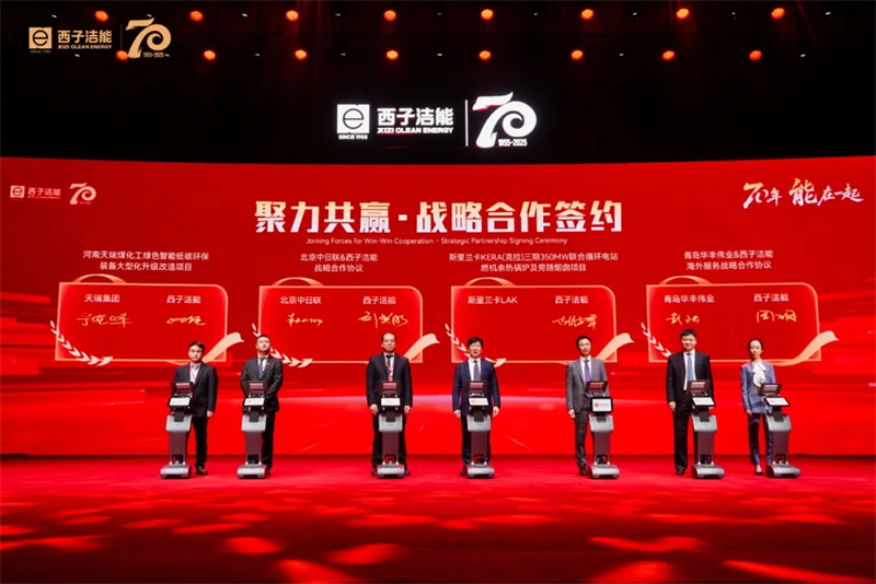 大会举行战略合作签约仪式。签约项目中,与天瑞集团携手的“绿色智能低碳环保装备升级项目”,推动煤化工产业绿色转型;与北京中日联再度合作,为焦化产业绿色高效发展注入关键动能;与斯里兰卡LTL集团合作的“KERA(克拉)三期350MW联合循环电站项目”,为斯里兰卡核心区域提供稳定电力,进一步巩固海外能源装备市场领先地位;与青岛华丰伟业签署的“海外服务战略合作协议”,整合资源拓展全球电力工程服务市场,为海外业务布局注入新动能。