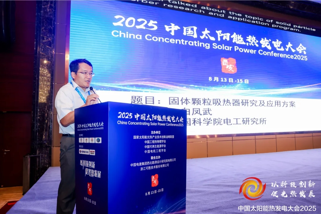 近期,在由太阳能光热产业技术创新战略联盟、中国工程热物理学会、中国可再生能源学会、中国电机工程学会主办,中国电力工程顾问集团西北电力设计院有限公司特别协办的2025中国太阳能热发电大会上,中国科学院电工研究所研究员、中国科学院大学工学院教授白凤武博士强作了题为《固体颗粒吸热器研究及应用方案》的报告。