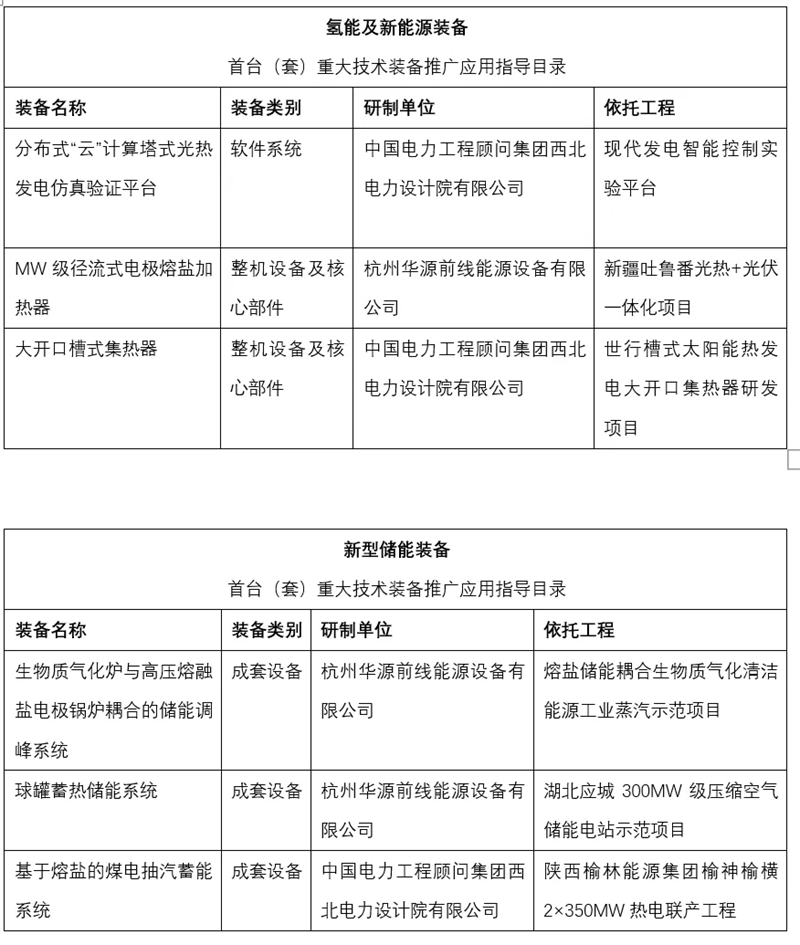 其中,在氢能及新能源装备中,中国电力工程顾问集团西北电力设计院有限公司依托“现代发电智能控制实验平台”开发的软件系统——分布式“云”计算塔式光热发电仿真验证平台,依托“世行槽式太阳能热发电大开口集热器研发项目”研制的整机设备及核心部件——大开口槽式集热器;杭州华源前线能源设备有限公司依托“新疆吐鲁番光热+光伏一体化项目”研制的整机设备及核心部件——MW级径流式电极熔盐加热器等入选。