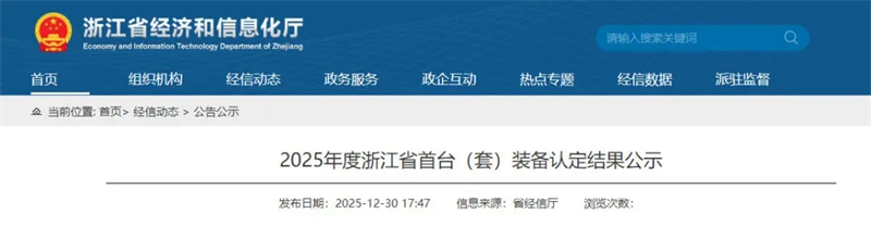 根据省委、省政府关于深入实施制造业首台(套)提升工程的有关要求,我厅联合省财政厅开展了2025年首台(套)装备认定工作。经企业申报、地方推荐、初审和专家评审,拟认定241项产品为2025年度浙江省首台(套)装备,现予以公示。