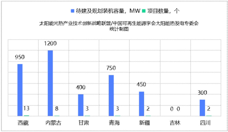 图:我国待建及规划的光热发电项目分布情况