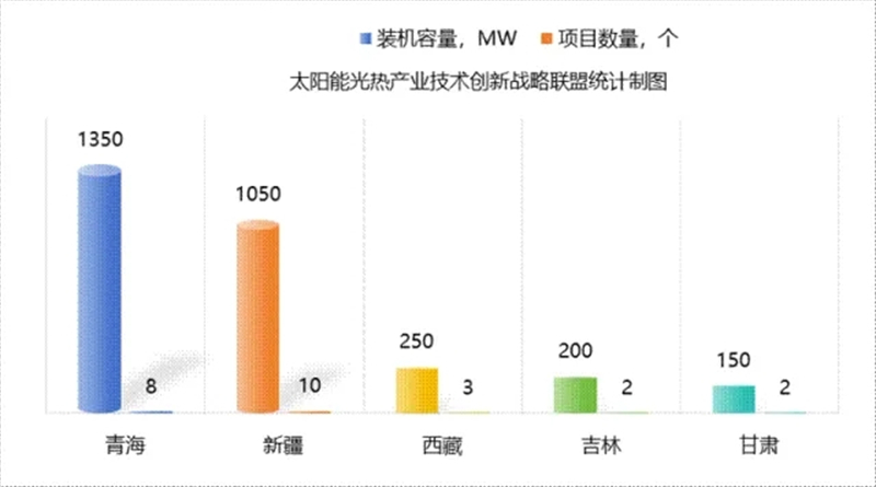 在各省区光热电站建设情况方面,太阳能光热产业技术创新战略联盟/中国可再生能源学会太阳能热发电专委会统计,截至2025年,甘肃省累计装机规模最大(621MW,含兰州大成1MW屋顶线菲式光热发电系统),青海省次之(510MW),新疆位居第三(450MW)。在建的光热发电项目方面,青海省在建光热发电装机规模最大,达到1350MW;新疆次之(1050MW);西藏位居第三(250MW)。太阳能光热产业技术创新战略联盟/中国可再生能源学会太阳能热发电专委会根据公布的信息以及初步核实发现,内蒙古、西藏和青海宣布待建和规划的光热发电装机容量位居前列,总计约3000MW。