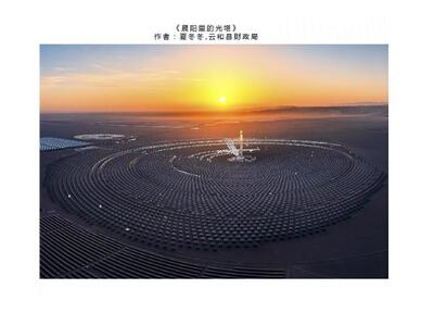 《光热光影》《晨阳里的光塔》《新能源新希望》于朝霞之中,捕捉敦煌光热电站的壮阔身姿,霞光与镜场交相辉映,美轮美奂。