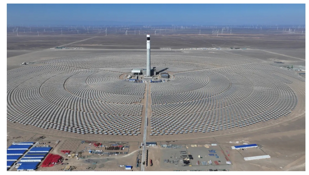 目前,行政办公楼、食堂等生活配套基本完工;吸热塔砌筑、主厂房门窗安装等控制性工程全部收官,上塔熔盐管道安装完成80%。镜场施工成效显著,定日镜基础浇筑21986根,镜体安装突破20516片,为后续系统调试筑牢基础。