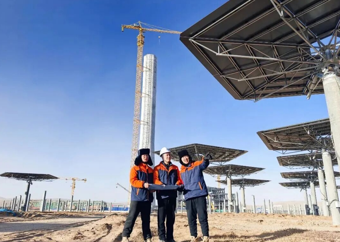 海拔高,斗志更高!在离天空最近的安多高原,西藏安多土硕100MW塔式光热电站吸热塔钢结构安装、熔盐储罐安装等工作有条不紊推进。中国电建西北院EPC总承包项目部倒排工期、挂图作战,全力冲刺塔体封闭与关键设备安装节点。