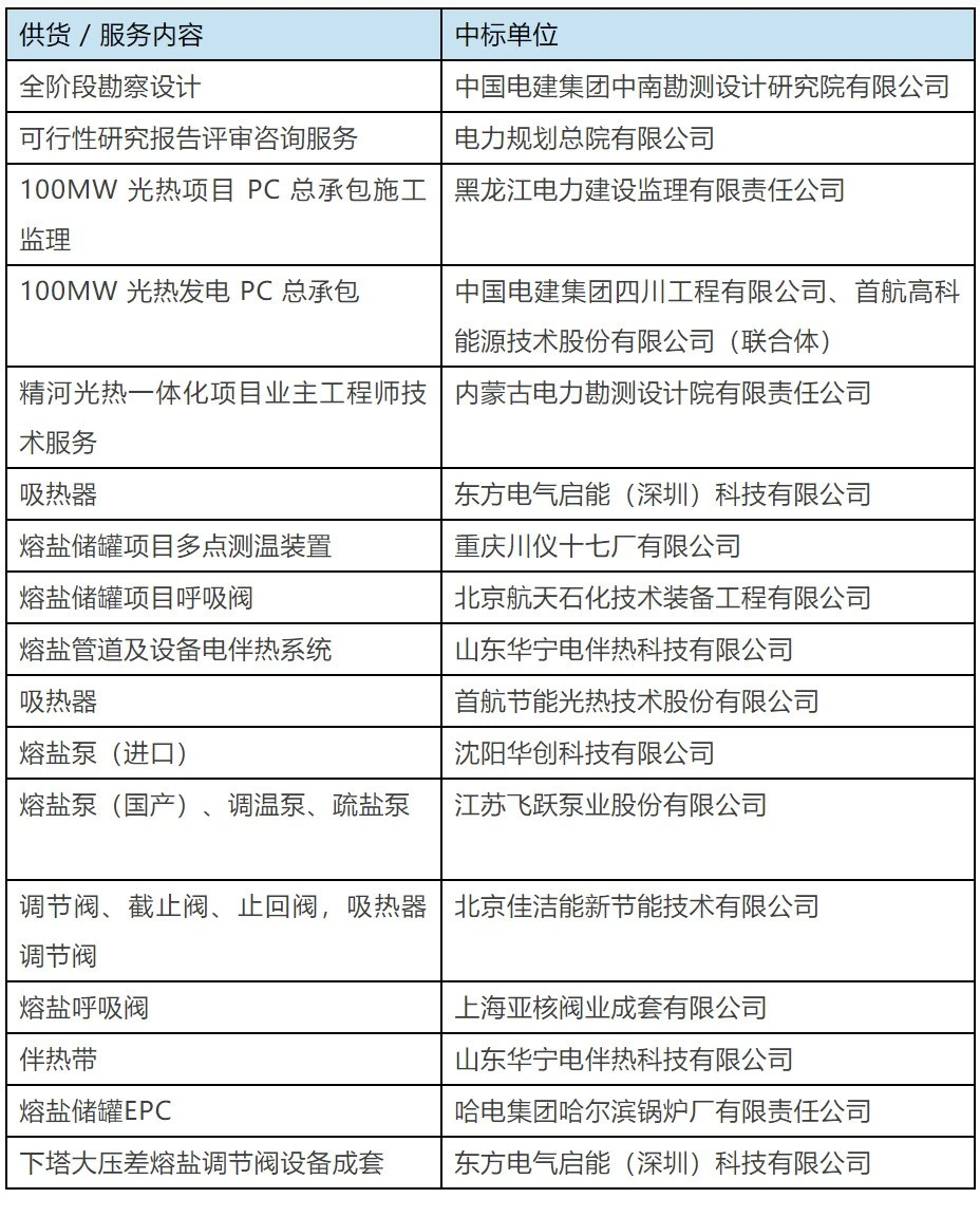 光热项目光热发电部分采用熔盐塔式技术路线,总镜场面积53万平方米,设计安装16179块32.76平方米的小型定日镜;选用二元熔盐(60%硝酸钠与40%硝酸钾)作为吸热和储换热介质,储热时长为8小时,设置1个冷熔盐罐和1个热熔盐罐;吸热塔高度约228m。由中国电建集团四川工程有限公司与首航高科能源技术股份有限公司(联合体)PC总承包,中国电建集团中南勘测设计研究院有限公司承担全阶段勘察设计。